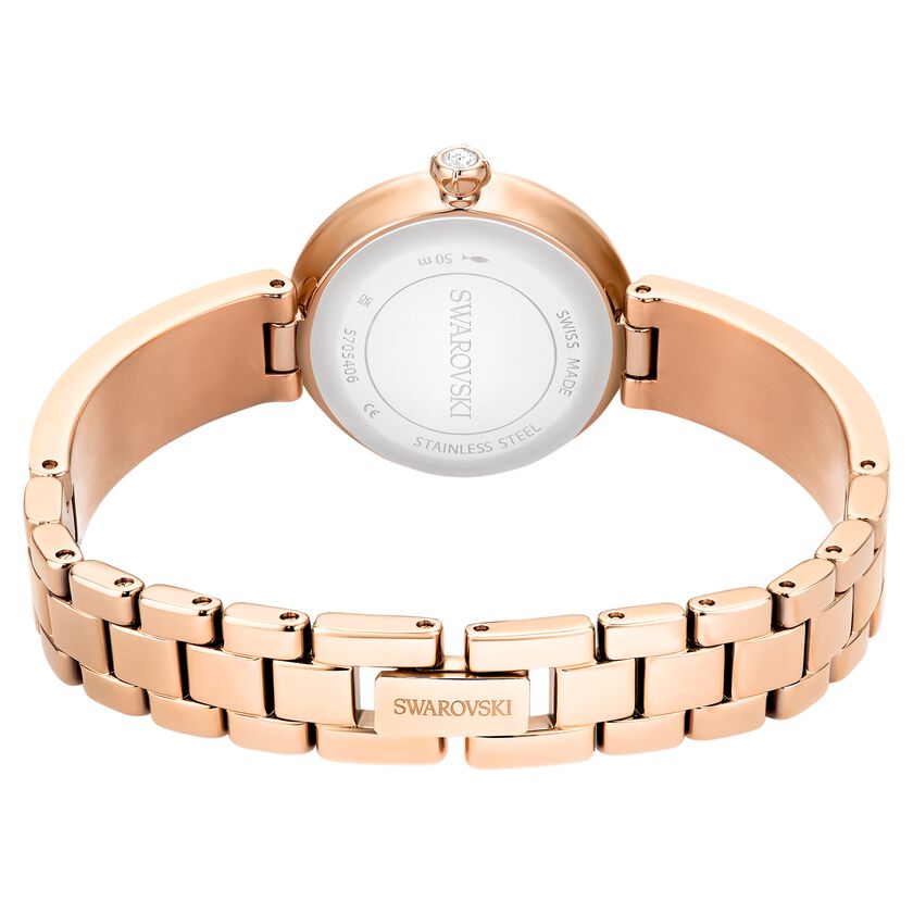 صناعة سويسرية، سوار مرصع بالكريستال، لون أبيض، لمسة نهائية باللون الذهبي الوردي