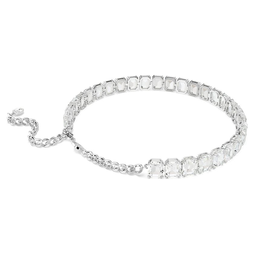 صُنع عقد شوكر البراق هذا من عائلة Millenia ليُشع ضوءاً ويُضفي أناقة على إطلالتكِ اليومية. يأتي هذا التصميم مطلياً بالروديوم ويحتضن صفاً متناسقاً من أحجار الكريستال الشفافة ذات القطع المثمن لتحصلي على أقصى درجات البريق واللمعان. عززي مظهر عقد شوكر هذا من خلال ارتدائه مع طقم متناسق من الأقراط المتدلية.