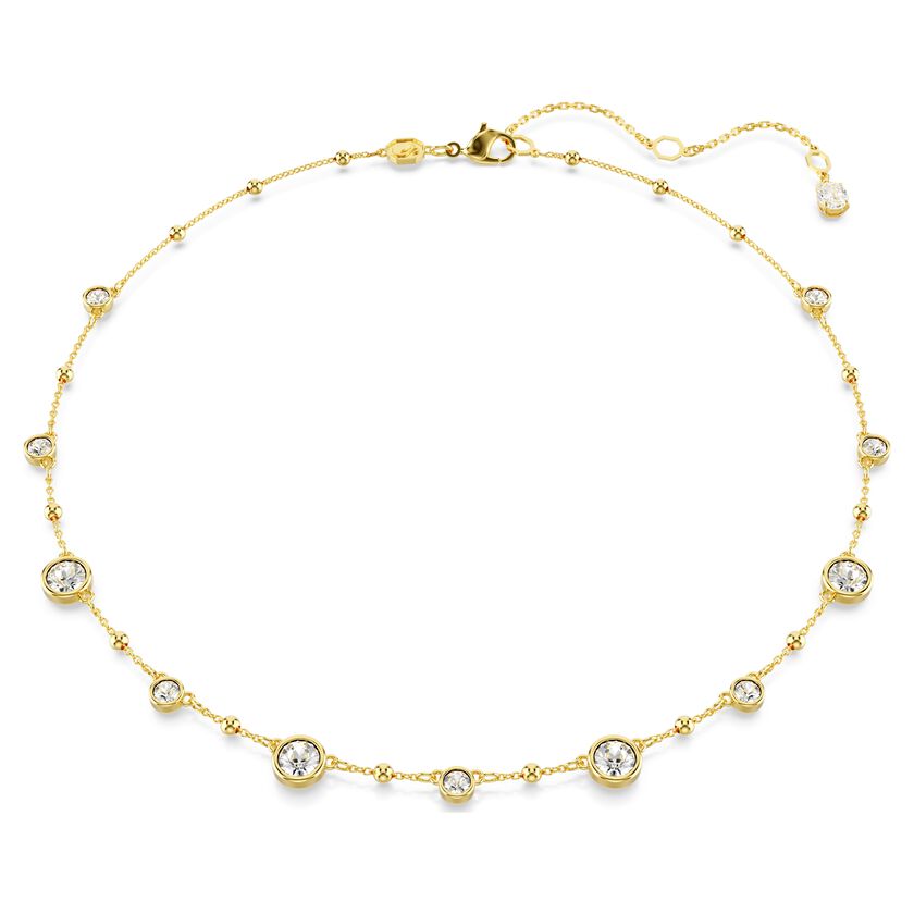 صُمم هذا العقد المحيط بالرقبة من مجموعة Imber لإضفاء لمسةٍ من البهجة على إطلالاتك اليومية. يتألف هذا التصميم من سلسلة مطلية باللون الذهبي تتخللها مجموعة من القطع المعدنية على شكل قطرات، والكريستالات الساحرة ذات القطع المُستدير المُرَصَّعة في أُطُر ذات حافة عريضة. تزدان الوصلة المتدلية أيضاً بحجر زركونيا سواروفسكي لمزيدٍ من الفخامة والأناقة. نَسِّقي هذه القطعة مع قطع مجوهرات أخرى لابتكار إطلالة فريدة من نوعها.