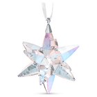 لا شك في أن هذه النجمة المتلألئة من سواروفسكي ستضيء منزلك. تتألق هذه النجمة الثلاثية الأبعاد بـ307 أوجه متلألئة تنشر الضوء في أرجاء المكان بألوانها الوامضة. يترك الكريستال الشفاف انطباعاً باهراً بفضل تأثيره اللامع المميز الذي يضفي بريقاً فائق التألق. تتدلى هذه القطعة من شريط من الساتان الأبيض، وتُعد إضافة مبهجة إلى أي مجموعة من قطع الزينة في الاحتفالات. قطعة مثالية للزينة أو للتقديم كهدية براقة في المناسبات الاحتفالية. قطعة ديكور. ليست مصممة لاستخدامها كلعبة. لا تناسب الأطفال الذين لم يبلغوا 15 عاماً.