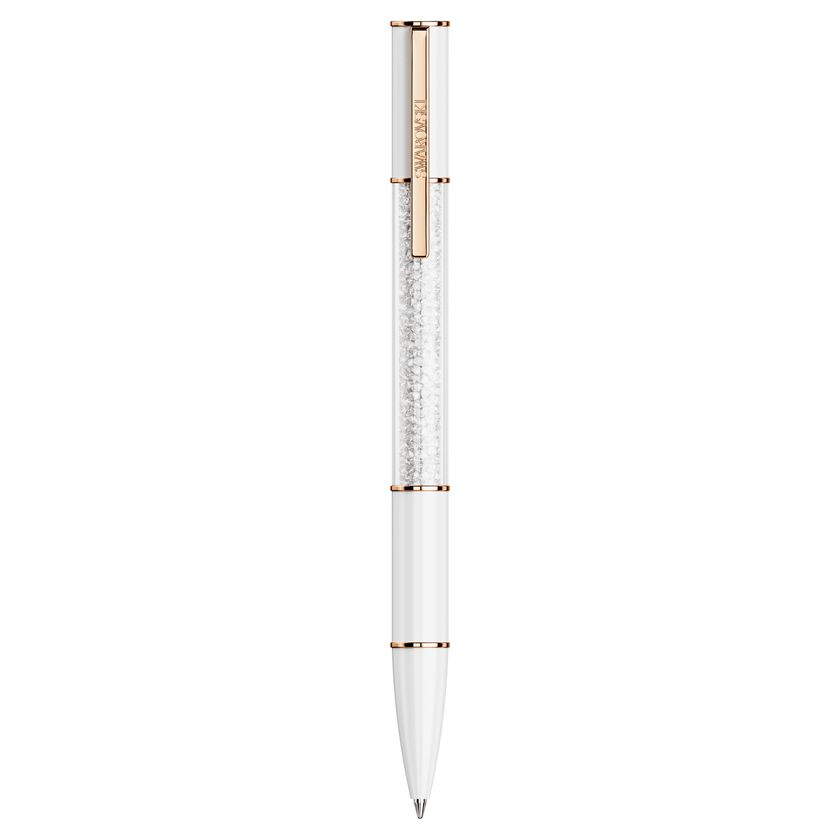 يجمع قلم الحبر الجاف Crystalline Lustre بين المهارة الإبداعية والفخامة. صُمم هذا القلم المميز للكتابة بأناقة، ويتميز بجزء أسطواني دائري الشكل باللون الأبيض ولمسات مطلية باللون الذهبي الوردي تشمل مشبكاً عملياً منقوشاً باسم سواروفسكي يزدان التصميم اللافت للأنظار بحوالي 480 حجر كريستال براق في المنتصف، أضيفت بعناية فائقة باستخدام أسلوب Crystalline الأيقوني. اقتني هذا القلم ليكون إضافة أنيقة تزين مكتبك أو قدميه هدية مميزة إلى أحبائك من عشاق الكتابة. تتوفر عبوات إعادة ملء الحبر باللونين الأسود والأزرق للشراء في متاجر سواروفسكي.